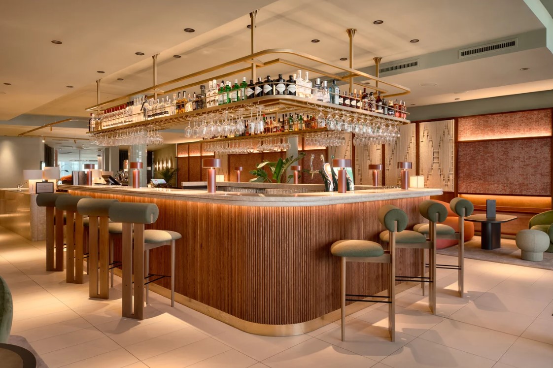 Das Architekturbüro AKSL Architects entwarf das Interieur der Bar, in dem entspannter Luxus mit mediterranem Charme und moderner Ästhetik verschmilzt.